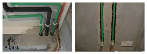 ● 廚衛(wèi)陽臺水管從墻上豎向排放,減少橫向排放,嚴禁水管走地面,特殊情況除外。