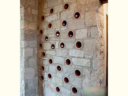 墻壁外側(cè)加了一層裝飾性的巖石層,不僅給予酷酷的美麗外觀,墻體的空間還被鉆孔用來(lái)收納美酒,十分有趣的設(shè)計(jì)。
