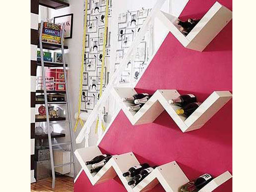 繼續(xù)利用墻壁空間,擱架一直是幫助墻壁實(shí)現(xiàn)收納功能的好助手,那針對(duì)于酒架,當(dāng)然需要特殊造型的擱架,波浪形酒架則能很好的將美酒固定在架子上,不用擔(dān)心滾下來(lái)。