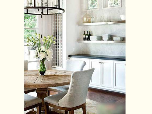 操作臺(tái)一側(cè)的墻壁,被打造成了入壁式酒架,大大的墻體擁有大大的藏酒空間,拿取也十分便捷,設(shè)置在餐桌附近,很方便。