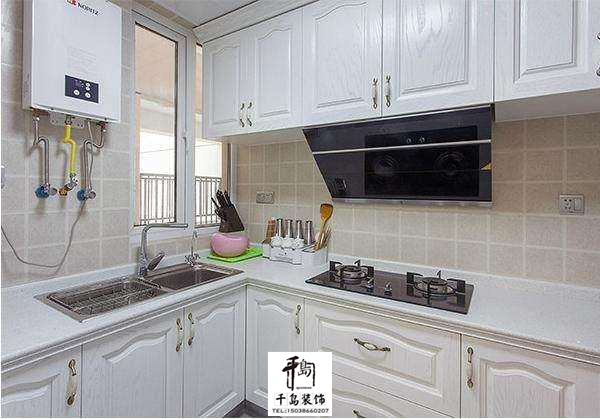 廚房,整體以白色為主,除了下面做了兩排柜子之外,還在墻上做了吊柜,這樣收納功能就很強大了。
