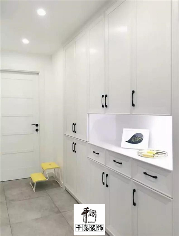 玄關(guān)的鞋柜如果直接擺個鞋柜,頂部空間就要浪費(fèi)掉,對于鞋子較多的家庭而言似乎有點(diǎn)浪費(fèi)了;那么這個時候如果通過硬裝的方式,把鞋柜與墻體嵌入安裝在一起的話,就顯得大氣舒適很多了。