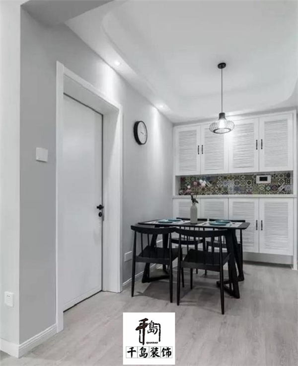 餐廳一般都是要餐邊柜或展示酒柜的,而靠墻做柜子的時候也不妨與墻面結(jié)合起來,裝成整潔大方的壁柜,然后整個餐廳都顯得高檔不少了,而且收納空間也得到了足夠的提升。