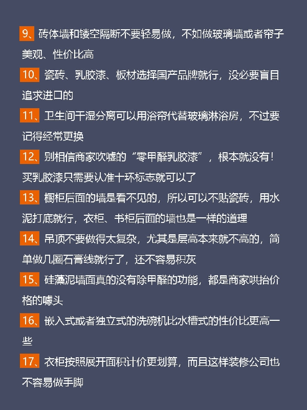 為什么裝修前期看著便宜,后期越裝預(yù)算越多?常見裝修的增項(xiàng)有哪些?下面一一列舉: