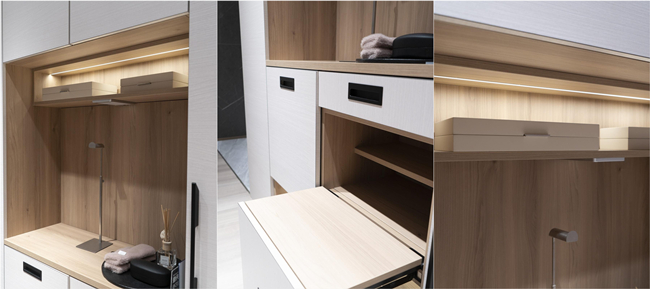 玄關(guān)柜作為進門第一眼看到的柜子,打造一個實用又美觀的玄關(guān)柜可大有學(xué)問呢!這點上歐派做的真的非常完美!不僅設(shè)計上要好看,空間上也有很多要考慮的地方~可折疊的凳子,出門的時候方便換鞋,還有收納臺的開放設(shè)計,可以掛一些帽子圍巾,還能放一點鑰匙,出門輕松又簡單!