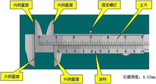 用途:測量長度、內(nèi)外徑、深度,是一種被廣泛使用的高精度測量工具,由主尺和附在主尺上能滑動的游標兩部分構(gòu)成。