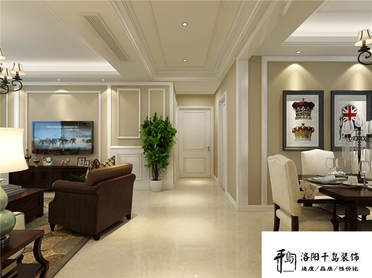 美式裝修,沒有太多造作的修飾與約束,貴氣加大氣而又不失自在與隨意。家具風(fēng)格主要植根于歐洲文化,強調(diào)簡潔、明晰的線條和優(yōu)雅、得體有度的裝飾。在空間分配上,設(shè)計師盡量去關(guān)心每一個家庭成員的內(nèi)心感受,從私密空間到開放式設(shè)計,設(shè)計師都花了很多心思。亞麻質(zhì)感的沙發(fā),既回歸自然,又別有情調(diào)。感謝名門萬象客戶對我們洛陽千島裝飾的信任可支持!