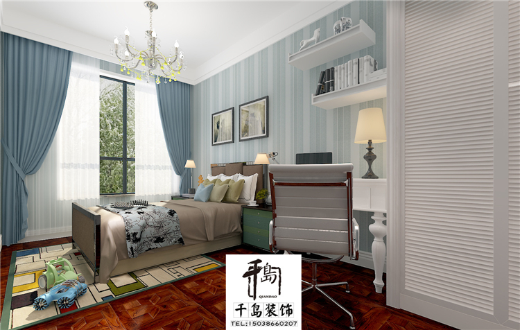 兒童房巧妙的設(shè)計(jì)內(nèi)部空間,既不空曠也不浮夸而且還去除了冰冷感。整體色調(diào)白藍(lán)相加,給孩子一個(gè)健康溫馨的成長(zhǎng)和休息的空間!