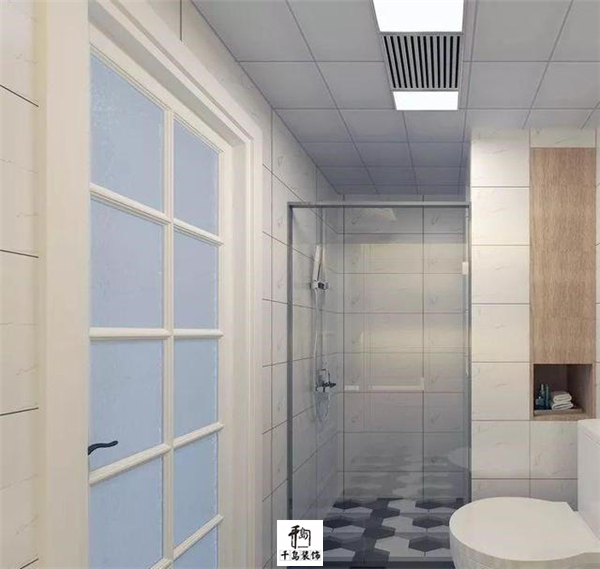 淋浴間和馬桶區(qū),用了玻璃門進行隔斷,干濕分離也處理得蠻到位的。墻面也被充分利用起來,做了壁龕設計,收納點小東西,很方便。