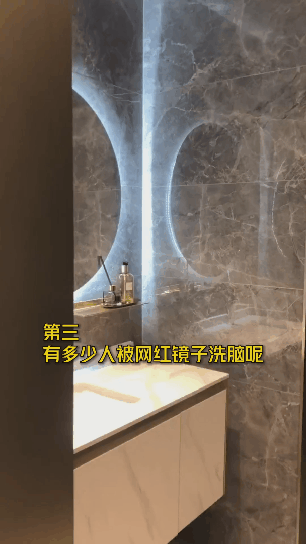 第三,有多少人被網(wǎng)紅鏡子洗腦的,不過(guò)開燈的效果確實(shí)很好看,但是入住以后開燈的次數(shù)絕對(duì)屈指可數(shù),還是選鏡柜最實(shí)用,把你亂七八糟的東西都收納起來(lái),不僅干凈,拿起東西也方便。