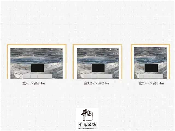 在設(shè)計(jì)背景墻的時(shí)候我們一定要考慮好背景墻的大小,主要是根據(jù)背景前的主體決定的,例如:電視。大理石尺寸方面的話(huà)呢通常是用80㎝規(guī)格石板拼裝,這樣比較容易運(yùn)輸以及安裝,不過(guò)也可以選用一個(gè)整版。
