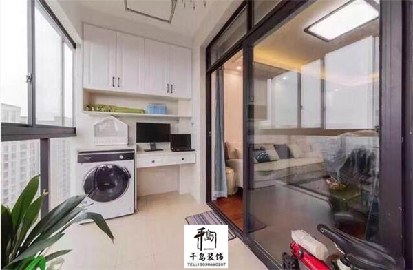 2、陽臺放洗衣機,是不是沒有想到還有這種操作。現(xiàn)在戶型都很小,衛(wèi)生間都放不下洗衣機。那么在陽臺上放洗衣機就成了一個不錯的選擇,而且洗衣機上面也可以打柜子,也不用擔心浪費了空間。
