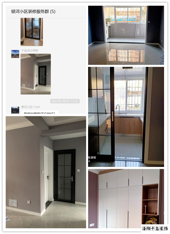 整個施工過程,我們一直通過微信群給客戶實時分享整個施工的工地動態(tài)。十月一國慶節(jié)的時候簽訂的合同,客戶上個月回來選了一下家具和電器,過幾天春節(jié)再回來直接就可以入住了!