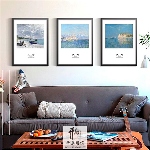 沙發(fā)背景墻可以選擇掛幾幅簡(jiǎn)約的掛畫,這件莫奈的翻印油畫,顏色比較豐富,留白的畫面顯得非常的有氣質(zhì),黑色邊框符合了對(duì)于北歐風(fēng)格定律的恪守,配合上柔柔的射燈,掛起來的效果非常贊。